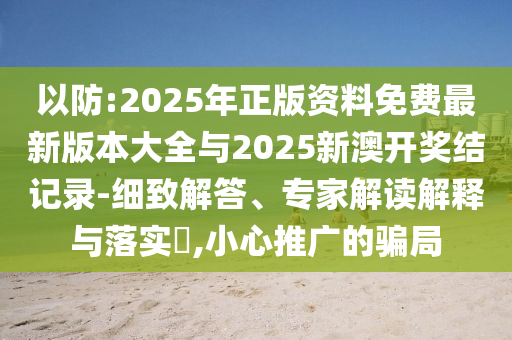 以防:2025年正版資料免費(fèi)最新版本大全與2025新澳開獎(jiǎng)結(jié)記錄,小心推廣的騙局”的細(xì)致解答、專家解讀解釋與落實(shí)