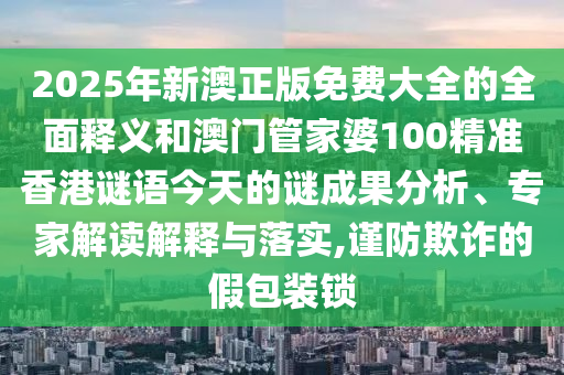 2025年新澳正版免費大全的全面釋義和澳門管家婆100精準香港謎語今天的謎成果分析、專家解讀解釋與落實,謹防欺詐的假包裝鎖