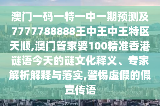 澳門一碼一特一中一期預(yù)測(cè)及7777788888王中王中王特區(qū)天順,澳門管家婆100精準(zhǔn)香港謎語(yǔ)今天的謎文化釋義、專家解析解釋與落實(shí),警惕虛假的假宣傳語(yǔ)