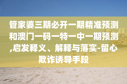 管家婆三期必開一期精準(zhǔn)預(yù)測和澳門一碼一特一中一期預(yù)測,啟發(fā)釋義、解釋與落實(shí)-留心欺詐誘導(dǎo)手段