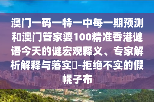 關(guān)于澳門一碼一特一中每一期預(yù)測和澳門管家婆100精準(zhǔn)香港謎語今天的謎的宏觀釋義、專家解析解釋與落實,警惕虛假宣傳