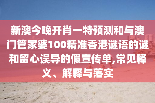 關(guān)于新澳今晚開肖一特預測和與澳門管家婆100精準香港謎語的常見釋義、解釋與落實,以及警惕誤導的虛假宣傳單
