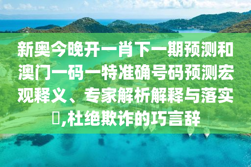 新奧今晚開(kāi)一肖下一期預(yù)測(cè)和澳門(mén)一碼一特準(zhǔn)確號(hào)碼預(yù)測(cè)宏觀釋義、專家解析解釋與落實(shí)?,杜絕欺詐的巧言辭