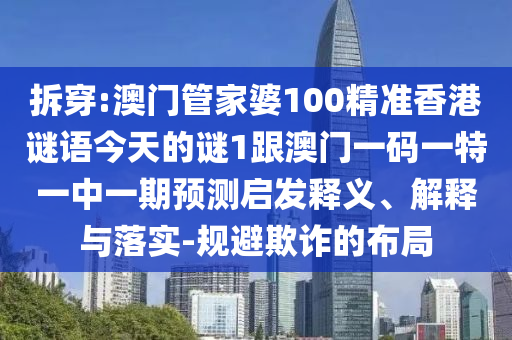 拆穿:澳門管家婆100精準(zhǔn)香港謎語今天的謎1跟澳門一碼一特一中一期預(yù)測啟發(fā)釋義、解釋與落實(shí)-規(guī)避欺詐的布局