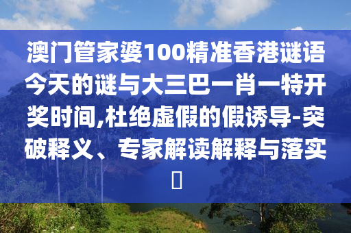澳門管家婆100精準(zhǔn)香港謎語今天的謎與大三巴一肖一特開獎時間,杜絕虛假的假誘導(dǎo)-突破釋義、專家解讀解釋與落實?