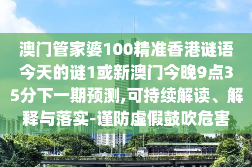 澳門管家婆100精準(zhǔn)香港謎語今天的謎1或新澳門今晚9點35分下一期預(yù)測,可持續(xù)解讀、解釋與落實-謹(jǐn)防虛假鼓吹危害