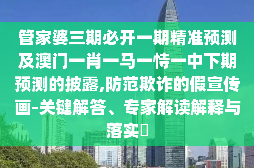 管家婆三期必開一期精準(zhǔn)預(yù)測及澳門一肖一馬一恃一中下期預(yù)測的披露,防范欺詐的假宣傳畫-關(guān)鍵解答、專家解讀解釋與落實(shí)?
