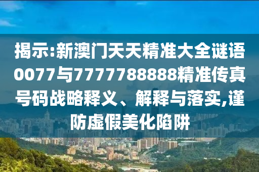 揭示:新澳門天天精準大全謎語0077與7777788888精準傳真號碼戰(zhàn)略釋義、解釋與落實,謹防虛假美化陷阱