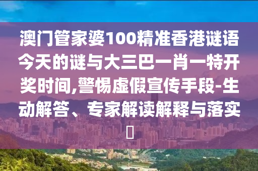 澳門管家婆100精準香港謎語今天的謎與大三巴一肖一特開獎時間,警惕虛假宣傳手段-生動解答、專家解讀解釋與落實?