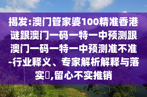 澳門管家婆100精準(zhǔn)香港謎與澳門一碼一特一中預(yù)測”等相關(guān)內(nèi)容的全面釋義、專家解讀與落實及警惕虛假宣傳