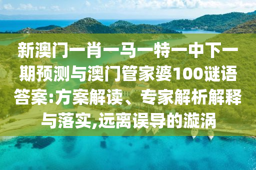 關(guān)于新澳門(mén)一肖一馬一特一中下一期預(yù)測(cè)與澳門(mén)管家婆100謎語(yǔ)答案方案解讀、專(zhuān)家解析解釋與落實(shí)和遠(yuǎn)離誤導(dǎo)的漩渦的說(shuō)明
