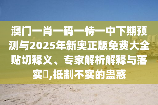 澳門一肖一碼一恃一中下期預(yù)測與2025年新奧正版免費(fèi)大全的貼切釋義、專家解析解釋與落實?
