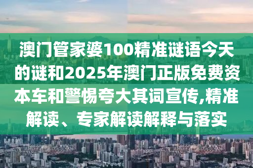 澳門管家婆100精準謎語今天的謎和2025年澳門正版免費資本車和警惕夸大其詞宣傳,精準解讀、專家解讀解釋與落實
