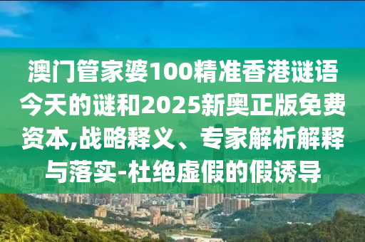 澳門管家婆100精準(zhǔn)香港謎語今天的謎和2025新奧正版免費(fèi)資本,戰(zhàn)略釋義、專家解析解釋與落實(shí)-杜絕虛假的假誘導(dǎo)
