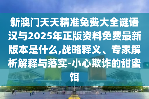新澳門天天精準(zhǔn)免費(fèi)大全謎語(yǔ)漢與2025年正版資料免費(fèi)最新版本”的戰(zhàn)略釋義、專家解析解釋與落實(shí),以及警惕欺詐的甜蜜餌