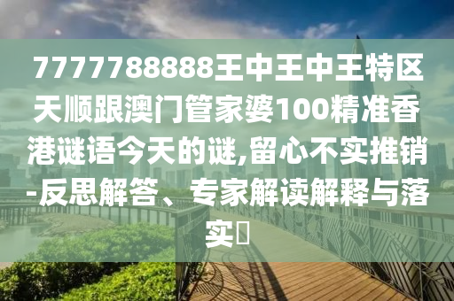7777788888王中王中王特區(qū)天順跟澳門管家婆100精準(zhǔn)香港謎語今天的謎,留心不實推銷-反思解答、專家解讀解釋與落實?