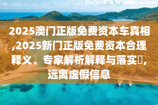 2025澳門正版免費資本車真相,2025新門正版免費資本:合理釋義、專家解析解釋與落實?