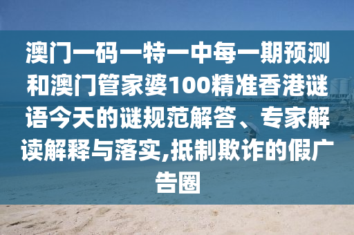 澳門一碼一特一中每一期預測和澳門管家婆100精準香港謎語今天的謎規(guī)范解答、專家解讀解釋與落實,抵制欺詐的假廣告圈