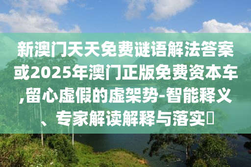 新澳門天天免費謎語解法答案或2025年澳門正版免費資本車,留心虛假的虛架勢-智能釋義、專家解讀解釋與落實?