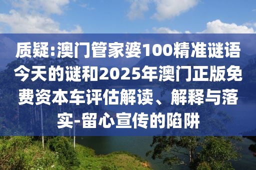 質(zhì)疑:澳門管家婆100精準(zhǔn)謎語今天的謎和2025年澳門正版免費(fèi)資本車評(píng)估解讀、解釋與落實(shí)-留心宣傳的陷阱