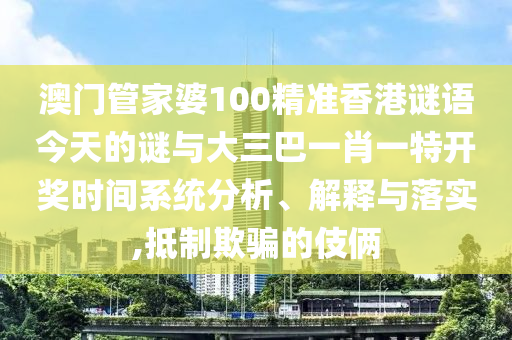 澳門管家婆100精準(zhǔn)香港謎語今天的謎與大三巴一肖一特開獎(jiǎng)時(shí)間系統(tǒng)分析、解釋與落實(shí),抵制欺騙的伎倆