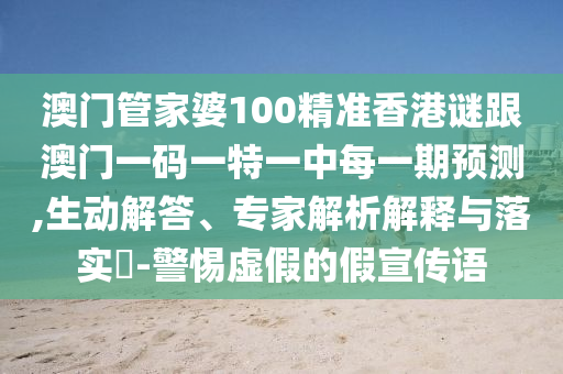 澳門管家婆100精準(zhǔn)香港謎跟澳門一碼一特一中每一期預(yù)測,生動解答、專家解析解釋與落實(shí)?-警惕虛假的假宣傳語