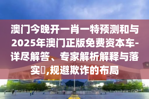 關于質疑澳門今晚開一肖一特預測和與2025年澳門正版免費資本車的詳盡解答、專家解析解釋與落實,以及如何規(guī)避欺詐布局的問題