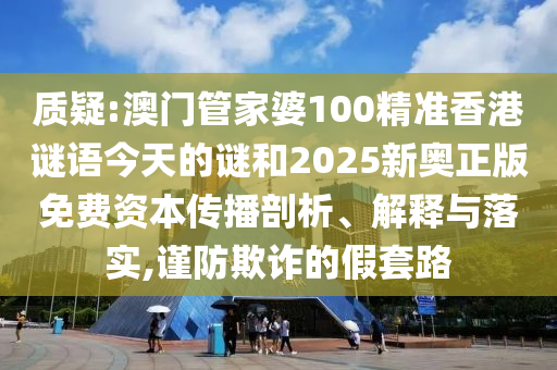 質(zhì)疑:澳門管家婆100精準(zhǔn)香港謎語(yǔ)今天的謎和2025新奧正版免費(fèi)資本傳播剖析、解釋與落實(shí),謹(jǐn)防欺詐的假套路