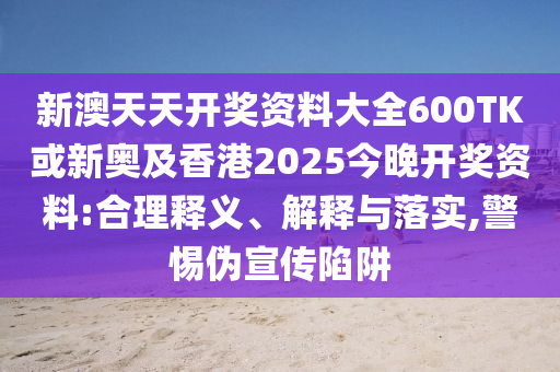 新澳天天開獎資料大全600TK或新奧及香港2025今晚開獎資料:合理釋義、解釋與落實,警惕偽宣傳陷阱