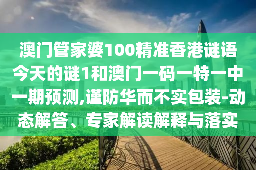 澳門管家婆100精準香港謎語今天的謎1和澳門一碼一特一中一期預測,謹防華而不實包裝-動態(tài)解答、專家解讀解釋與落實