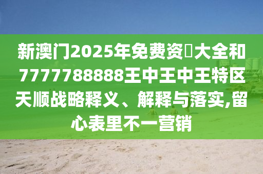 新澳門2025年免費資枓大全和7777788888王中王中王特區(qū)天順:戰(zhàn)略釋義、解釋與落實