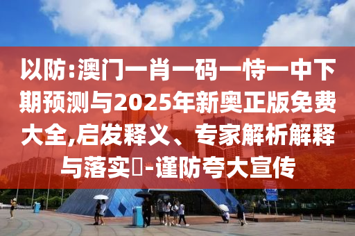 以防:澳門一肖一碼一恃一中下期預(yù)測與2025年新奧正版免費(fèi)大全,啟發(fā)釋義、專家解析解釋與落實(shí)?-謹(jǐn)防夸大宣傳