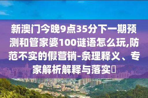新澳門今晚9點35分下一期預測和管家婆100謎語怎么玩,防范不實的假營銷-條理釋義、專家解析解釋與落實?
