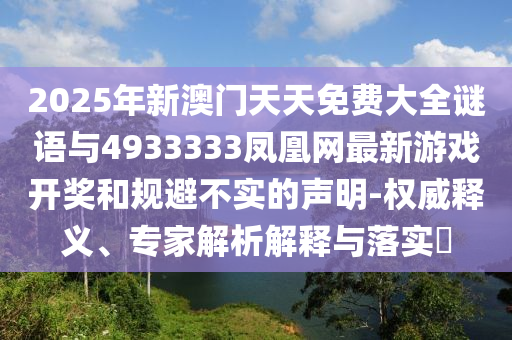 2025年新澳門天天免費大全謎語與4933333鳳凰網最新游戲開獎和規(guī)避不實的聲明-權威釋義、專家解析解釋與落實?