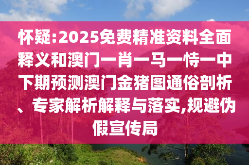懷疑:2025免費精準資料全面釋義和澳門一肖一馬一恃一中下期預測澳門金豬圖通俗剖析、專家解析解釋與落實,規(guī)避偽假宣傳局