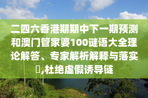 二四六香港期期中下一期預(yù)測和澳門管家婆100謎語大全理論解答、專家解析解釋與落實?,杜絕虛假誘導(dǎo)鏈