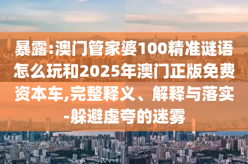 暴露:澳門管家婆100精準(zhǔn)謎語(yǔ)怎么玩和2025年澳門正版免費(fèi)資本車,完整釋義、解釋與落實(shí)-躲避虛夸的迷霧