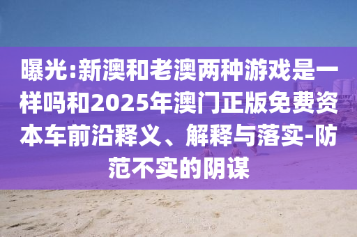 曝光:新澳和老澳兩種游戲是一樣嗎和2025年澳門正版免費(fèi)資本車前沿釋義、解釋與落實(shí)-防范不實(shí)的陰謀