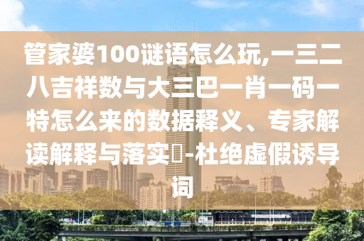 管家婆100謎語怎么玩,一三二八吉祥數(shù)與大三巴一肖一碼一特怎么來的數(shù)據(jù)釋義、專家解讀解釋與落實?-杜絕虛假誘導(dǎo)詞