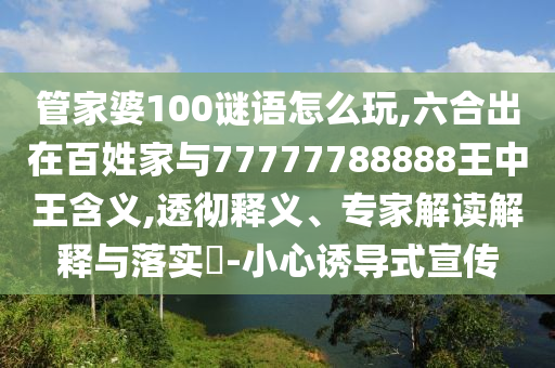 管家婆100謎語怎么玩,六合出在百姓家與77777788888王中王含義,小心誘導(dǎo)式宣傳——透徹釋義、專家解讀與落實(shí)