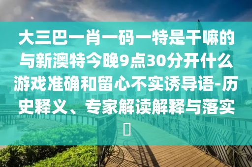 關(guān)于關(guān)鍵詞“大三巴一肖一碼一特是干嘛的”與新澳特今晚9點(diǎn)30分開什么游戲準(zhǔn)確歷史釋義、專家解讀解釋與落實(shí),以及提醒公眾警惕虛假宣傳和不實(shí)誘導(dǎo)語的內(nèi)容如下: