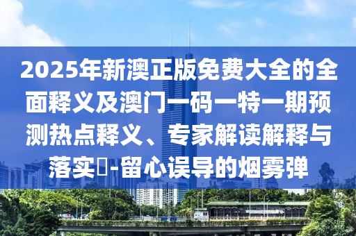 2025年新澳正版免費(fèi)大全的全面釋義及澳門一碼一特一期預(yù)測(cè),留心誤導(dǎo)的煙霧彈”的熱點(diǎn)釋義、專家解讀與落實(shí)