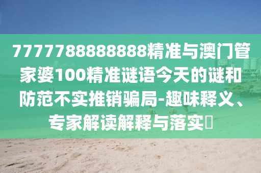 7777788888888精準(zhǔn)與澳門管家婆100精準(zhǔn)謎語今天的謎和防范不實推銷騙局-趣味釋義、專家解讀解釋與落實?