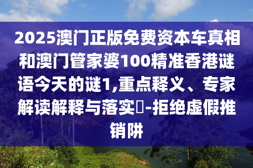 2025澳門正版免費資本車真相和澳門管家婆100精準香港謎語今天的謎1,重點釋義、專家解讀解釋與落實?-拒絕虛假推銷阱