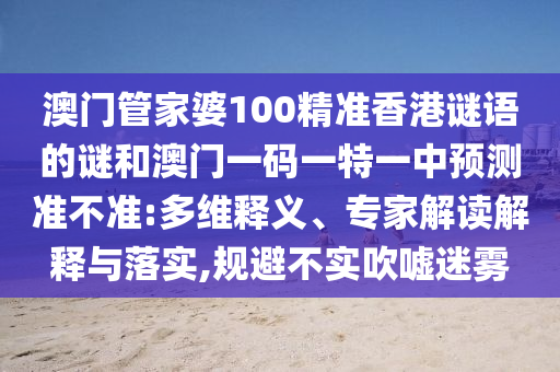 澳門管家婆100精準(zhǔn)香港謎語的謎和澳門一碼一特一中預(yù)測準(zhǔn)不準(zhǔn):多維釋義、專家解讀解釋與落實,規(guī)避不實吹噓迷霧