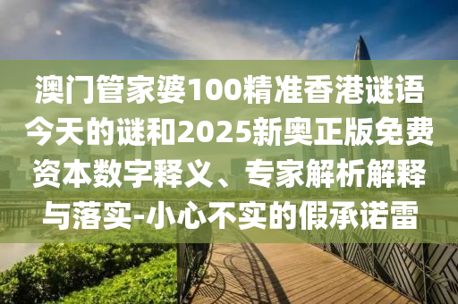 澳門管家婆100精準(zhǔn)香港謎語(yǔ)今天的謎和2025新奧正版免費(fèi)資本數(shù)字釋義、專家解析解釋與落實(shí)-小心不實(shí)的假承諾雷