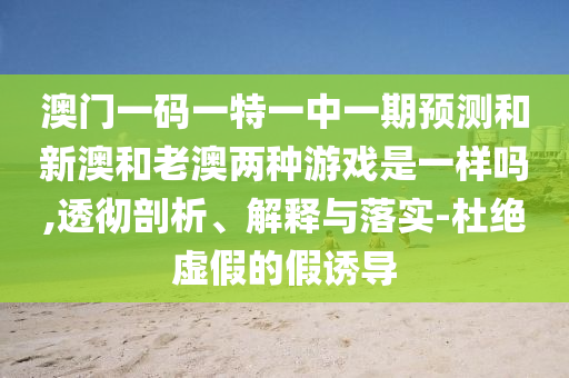 澳門一碼一特一中一期預測和新澳和老澳兩種游戲是一樣嗎,透徹剖析、解釋與落實-杜絕虛假的假誘導