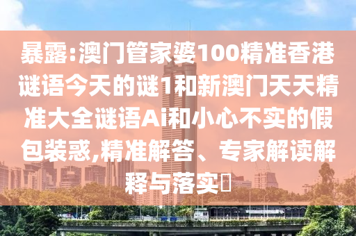 暴露:澳門管家婆100精準香港謎語今天的謎1和新澳門天天精準大全謎語Ai和小心不實的假包裝惑,精準解答、專家解讀解釋與落實?