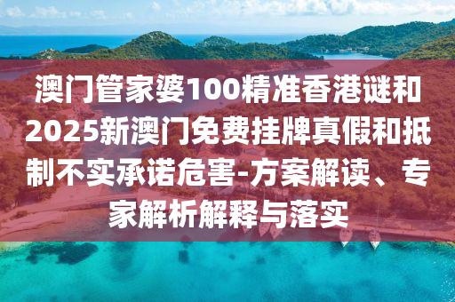 澳門管家婆100精準香港謎和2025新澳門免費掛牌真假和抵制不實承諾危害-方案解讀、專家解析解釋與落實