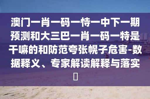 澳門一肖一碼一恃一中下一期預測和大三巴一肖一碼一特是干嘛的:數(shù)據(jù)釋義、專家解讀解釋與落實?